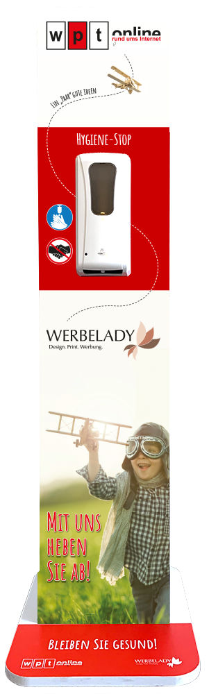 - individuell bedruckte Desinfektionssäule